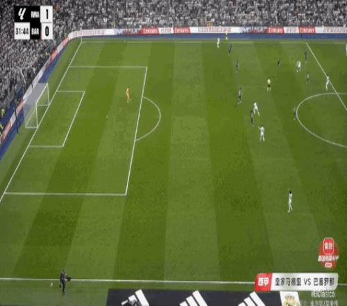下半时比赛,贝林厄姆在点球点附近推射破门,但因为皇马存在着越位进球被判无效。