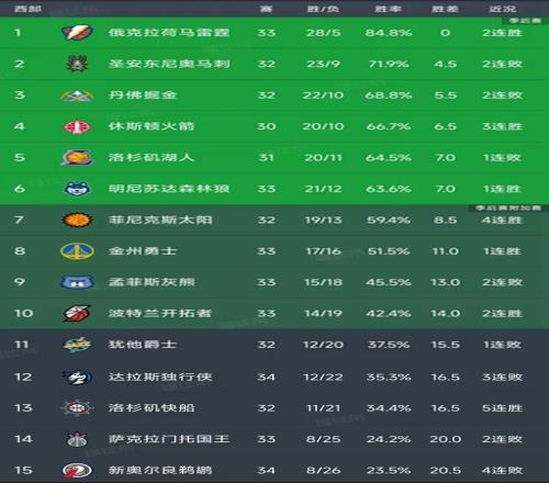 西部最新积分榜